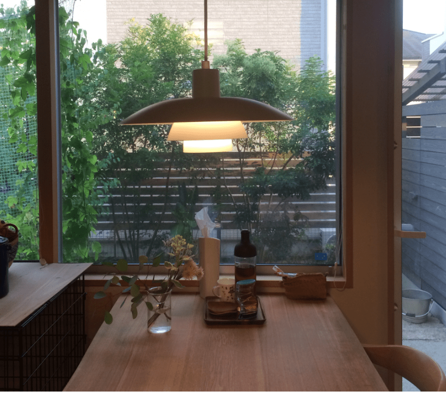 階段途中の窓からは隣のお庭の緑がふわっと見えて、とても気持ちの良い階段になりました。