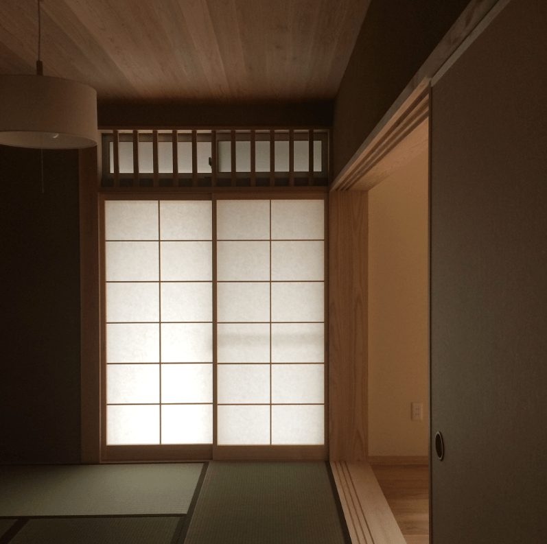1階の床は吉野杉赤身の上小板の厚板です。赤がとても美麗で上物の床板です。杉は、冬は温かみがあり夏は爽やかです。どの季節も手触り足触りがよく、小さなお子さまが寝ころびたくなる気持ちがよくわかります。