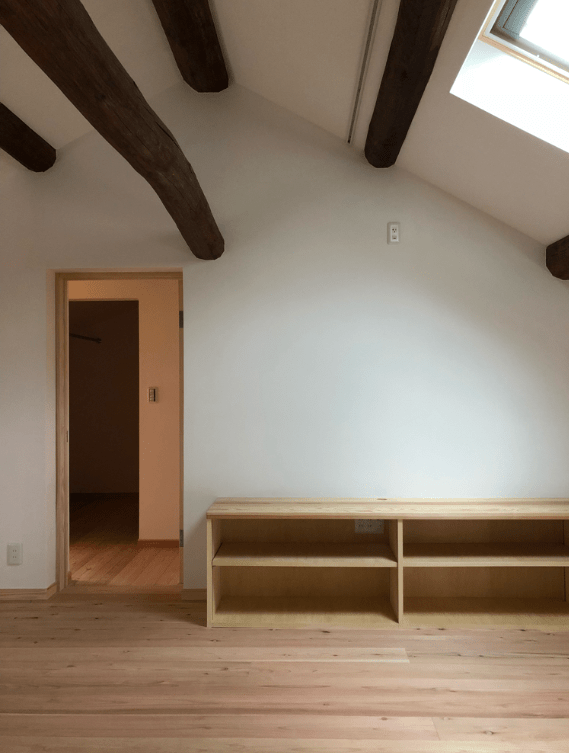つし2階には居室を設けています。天井が低いですが小屋裏部屋のような部屋になりました。
