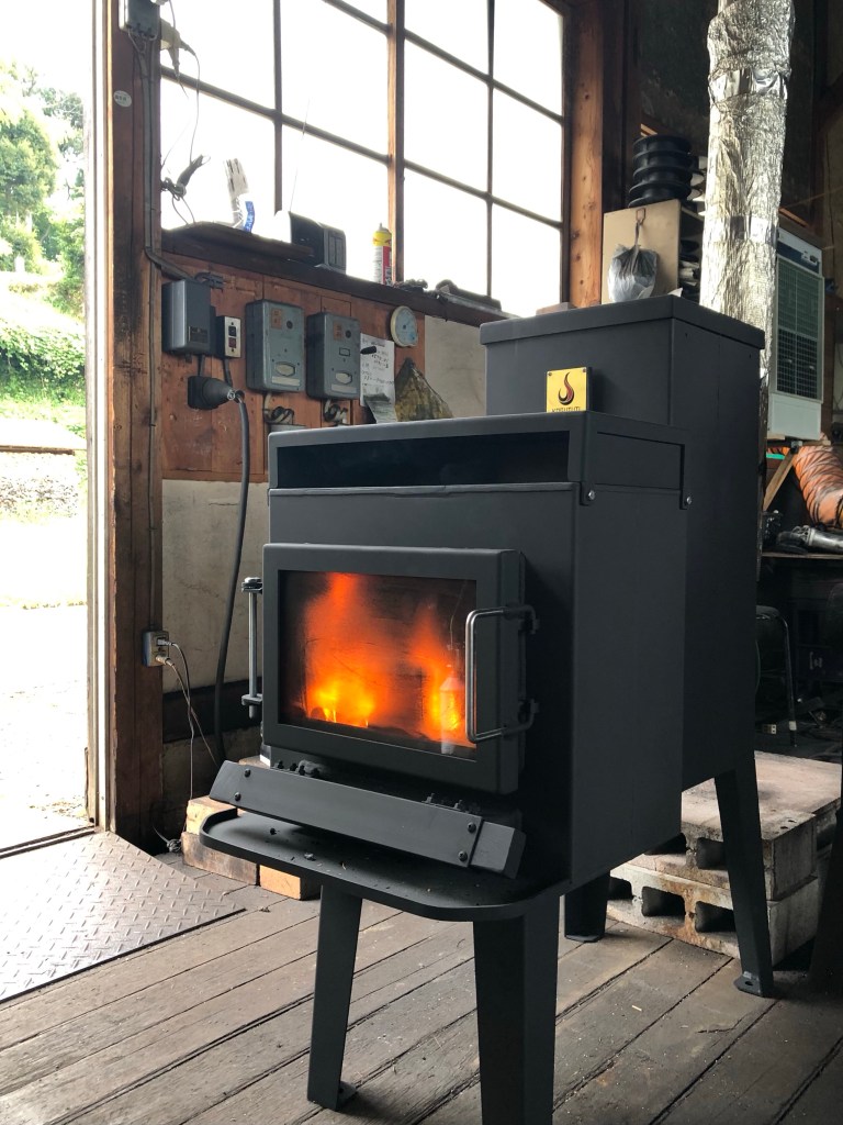 このストーブは針葉樹や竹でも燃やすことができ、灰は一般的な薪ストーブの半分程度と少なく、タールも出ないとのことです。そのこともあり煙突が傷みにくく持ちが良いようです。