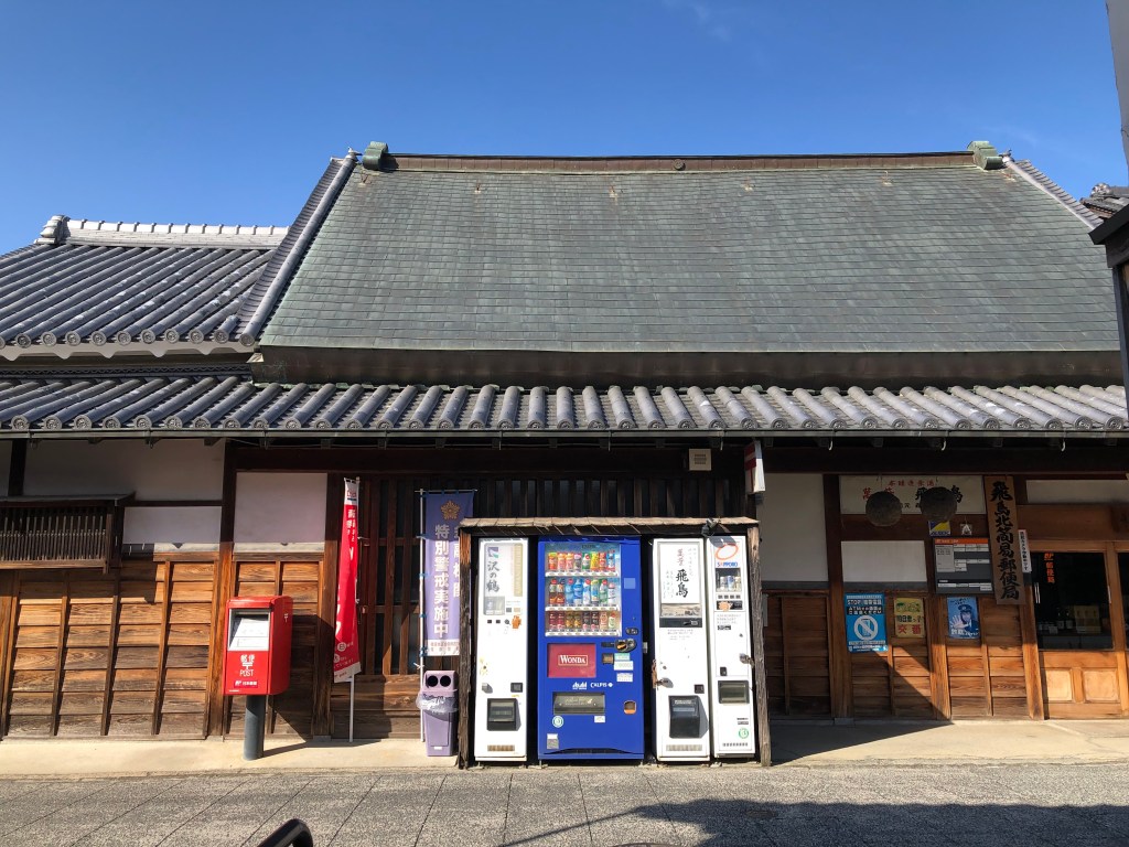 立派な建物が良い状態で普通に立ち並ぶ生きた街並みですが、飛鳥で登録文化財(築後50年以上の建物で文化的価値があるもの)に指定されている建物はこの建物だけです。こちらは文化財的価値を残しながら改修され、現在宿泊施設として活用されています。
