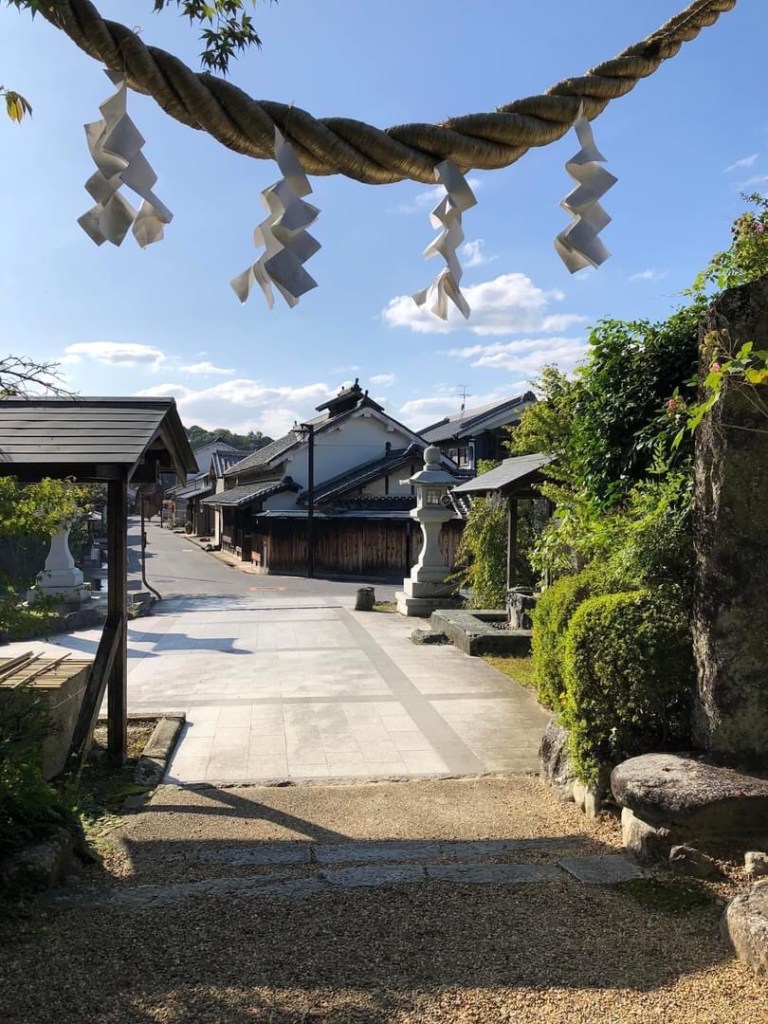 飛鳥坐神社の前の通りには立派な伝統的建造物が立ち並んでいます。