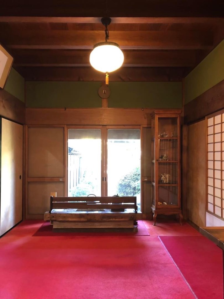 客席(椅子テーブル)のある畳の間には、緋毛氈が敷き詰められています。大きな改修もなく昔のままの造りですが、洋風の椅子テーブルともマッチしていてとても素敵でした。