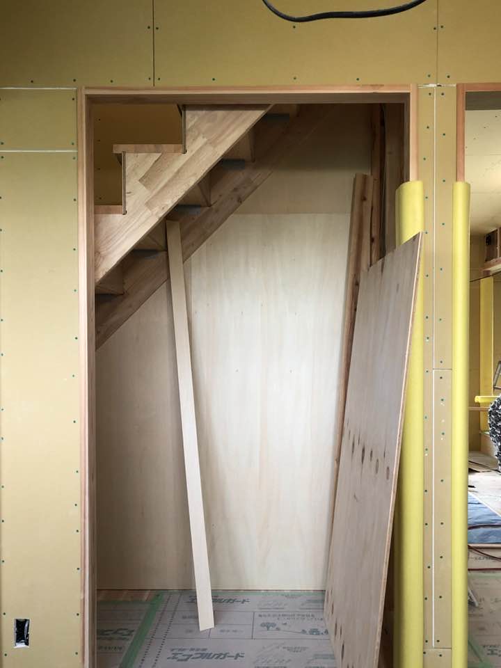 ここの家は平屋+小屋裏収納室ですが、小屋裏に上がる階段もあります。階段の下も収納スペースにしています。