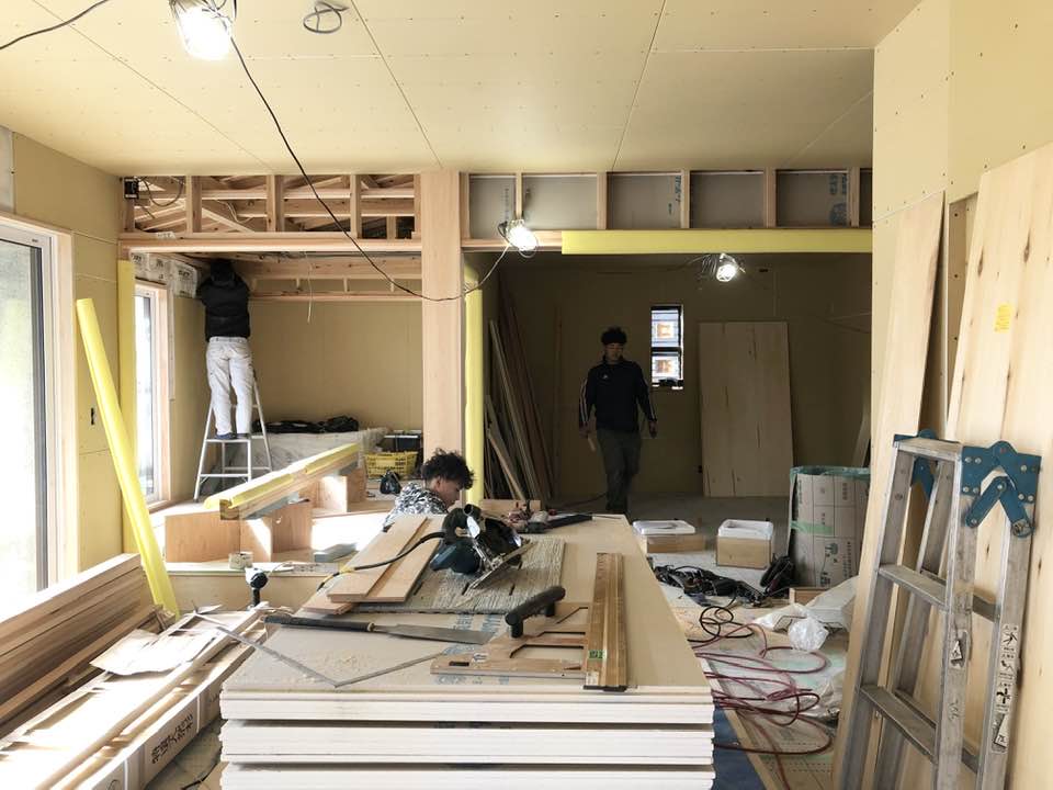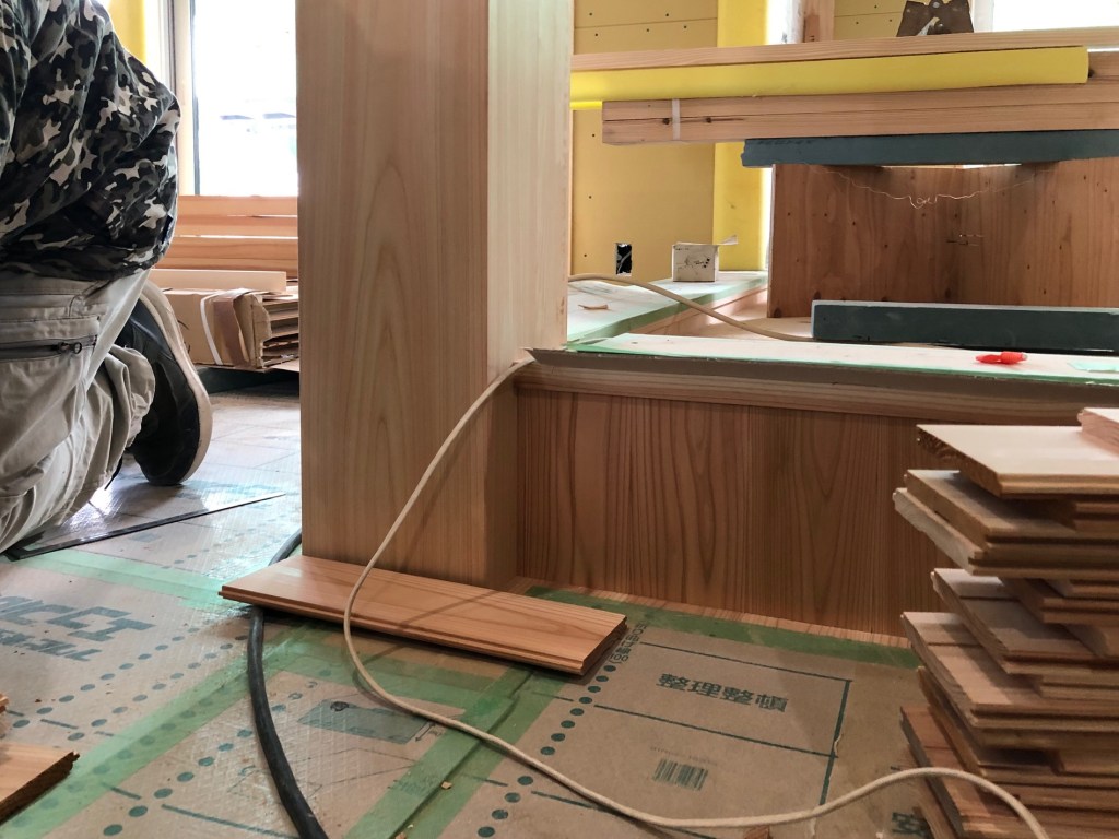 内部の工事もだいぶ進んできました。和室の天井の廻り縁を設置中。