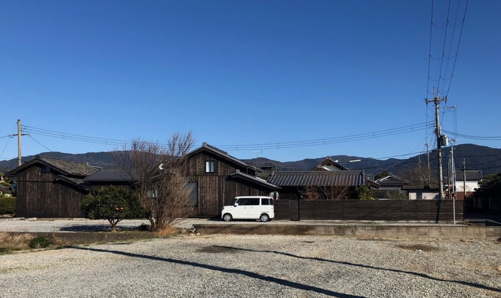 竣工時には、黒々とした建物が出現した感がありましたが、少し色褪せてきて集落の風景に馴染んできたように思います。
