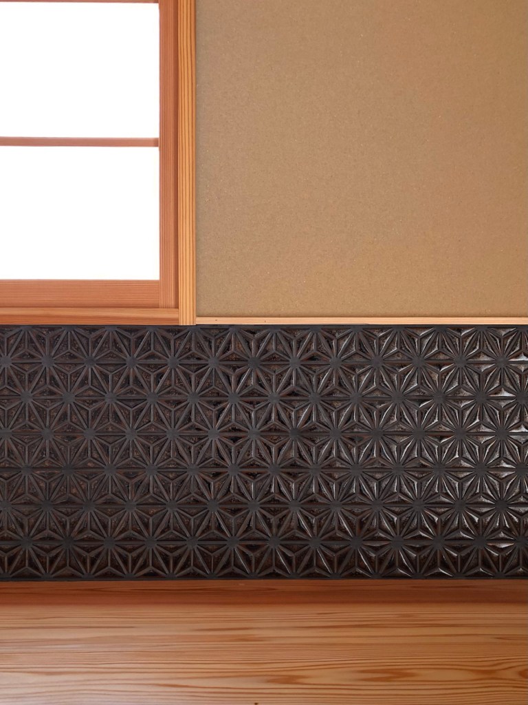 レトロなタイルで和の雰囲気と合います。土間タイルと同系色で落ち着いた雰囲気になりました。