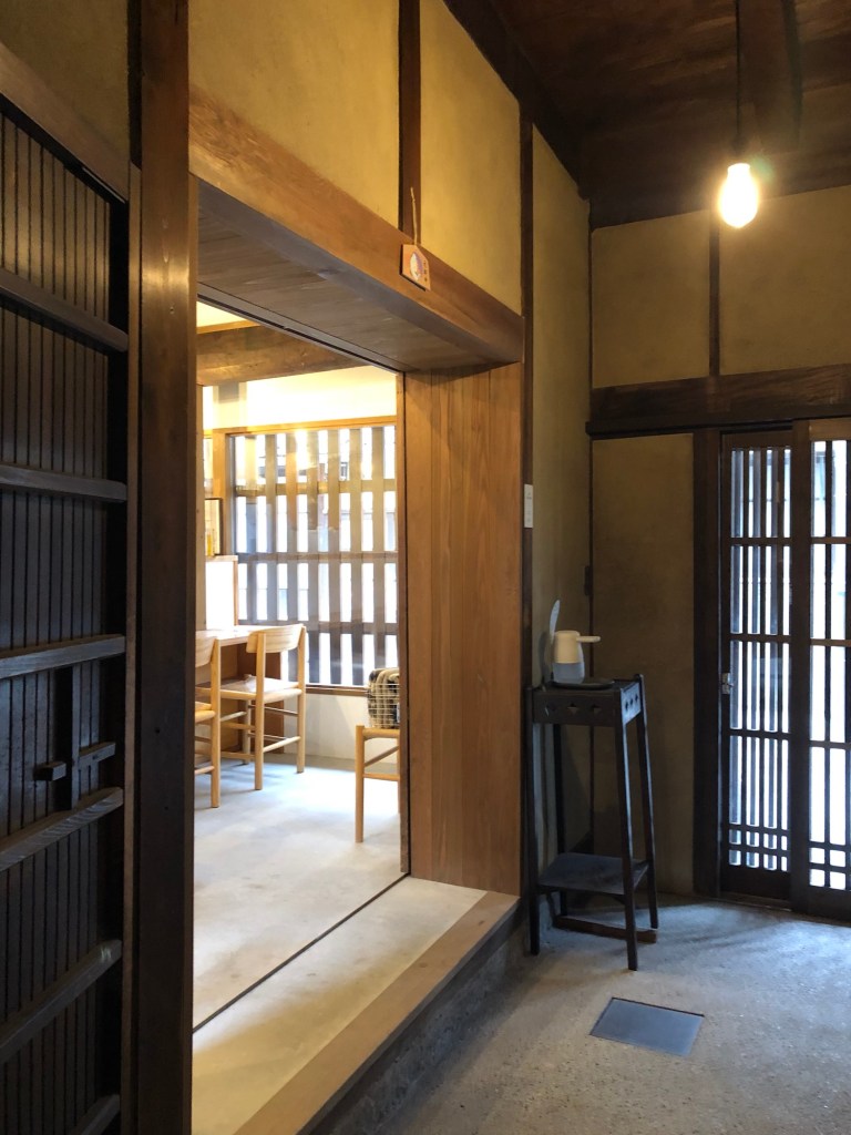 民泊と喫茶店をされており、喫茶室からの庭の眺めがとても風情があります。奥は茶室棟です。