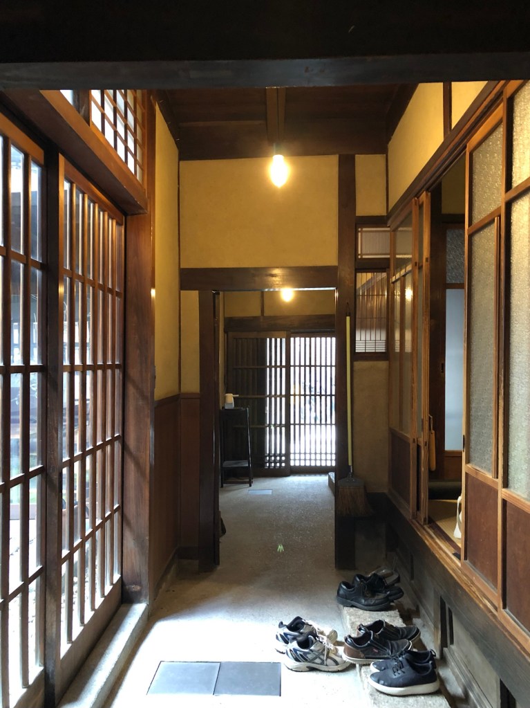 別棟ですのでそれぞれの建物の柱が二重に建っており、奥行きのある入口になっています。