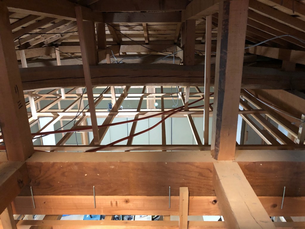 天井を取ったところ、以前の改修時に補強されていることが分かりました。