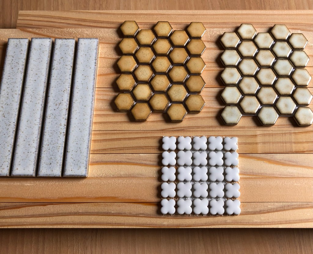 洗面、トイレ、キッチンで使うタイルも決まりました。タイルは、選ぶタイルによって厚みや寸法によって取り合いの寸法が変わってくるので、早めにご検討いただきました。どれも風合いのあるタイルで仕上がりが楽しみです。