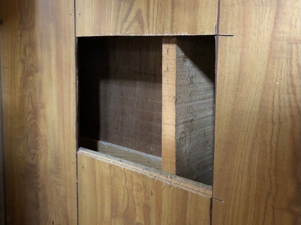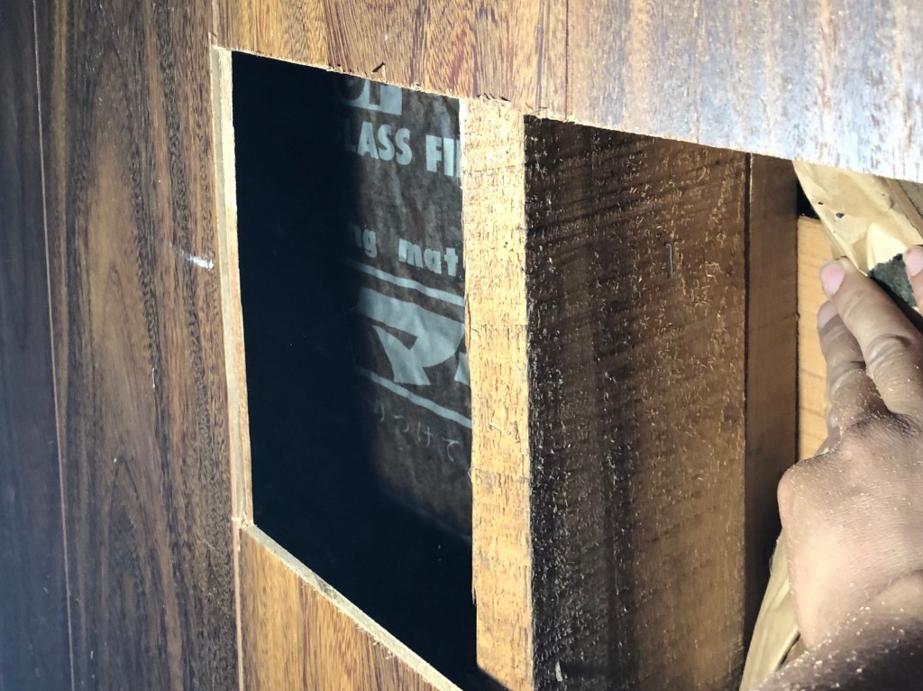 壁の中の状況を確認するために、部分的に穴を空けて土壁の存在の有無を確認させて頂きました。