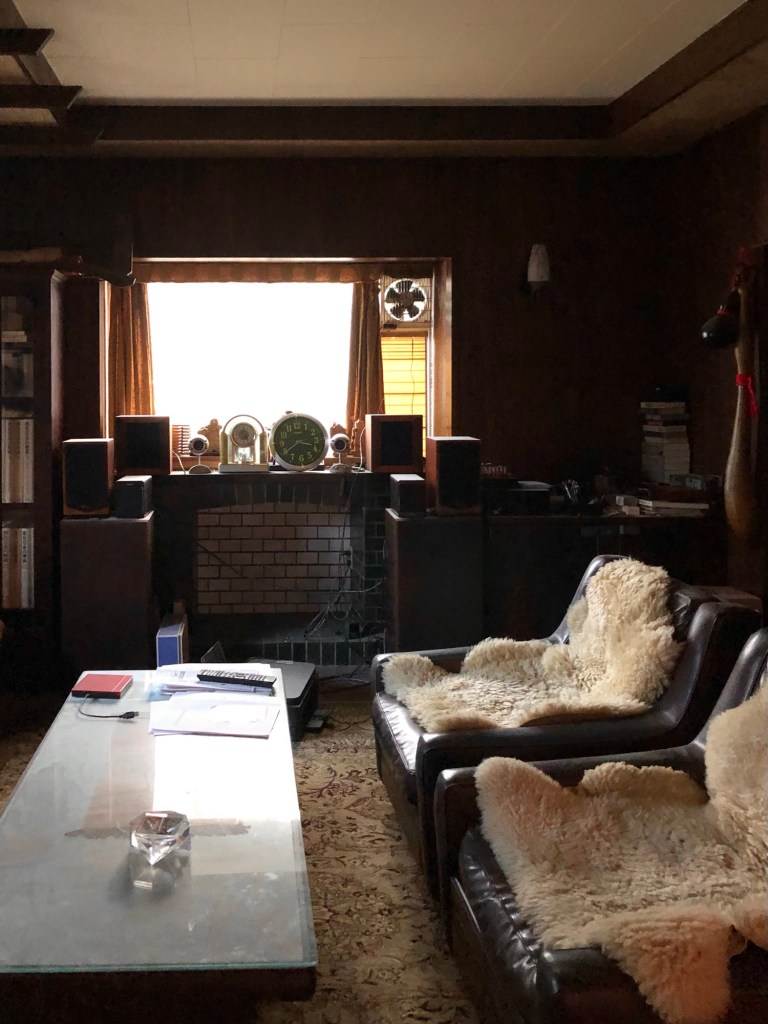 懐かしい応接間。中学生の頃に民家に住む友達の家々に遊びに行くと、どこも玄関土間横の部屋が豪華な応接間になっていました。折り上げ天井や出窓、木目の壁、暖炉のようなデザインも当時の応接間でよく見られたつくりです。