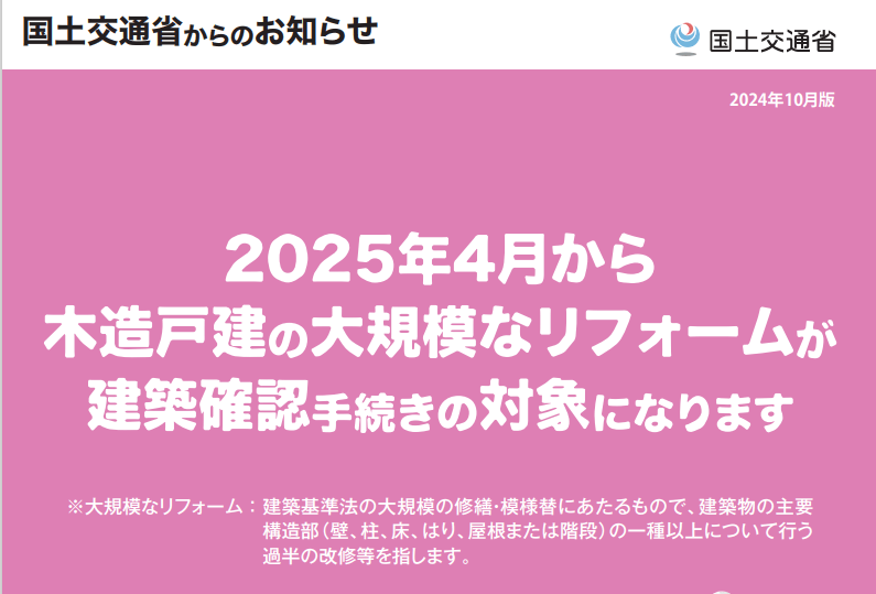 今後、住宅のリフォーム(大規模修繕・模様替え)の確認申請が増えることと思います。主要構造部の過半を超える改修ではないと判断して確認申請を出さず結果的に確認が必要だったということが無いよう、情報を集めなければなりません。