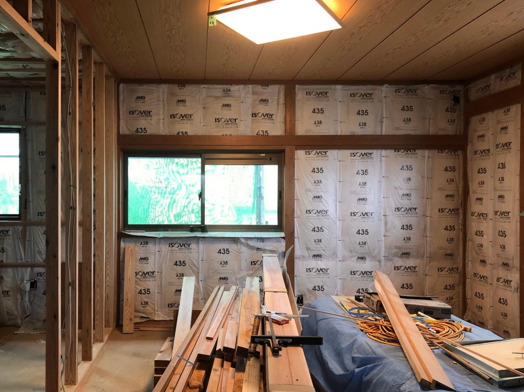 断熱材を入れたところ。断熱性能はかなり改善することと思います。