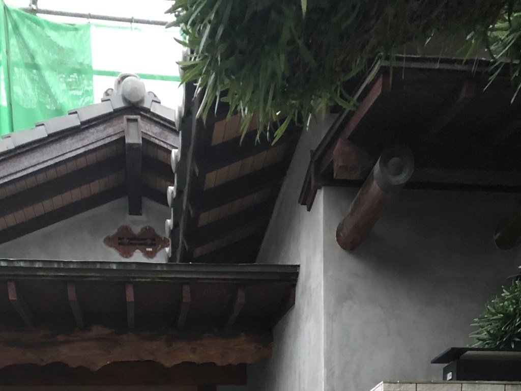 外壁塗り替えのための下地塗りも終わりました。仕上げはジュラク仕上げです。黄土色系に色が決まり、仕上がりが楽しみです。ポーチの屋根や庇を受ける腕木にも丸太が使われています。いずれも小口には銅板の蓋がついています。大工さんや板金屋さんが丹精されたところだと思います。これもこの家の特徴であり良いところだと感じています。