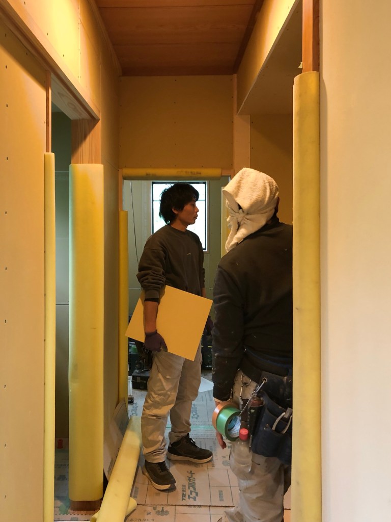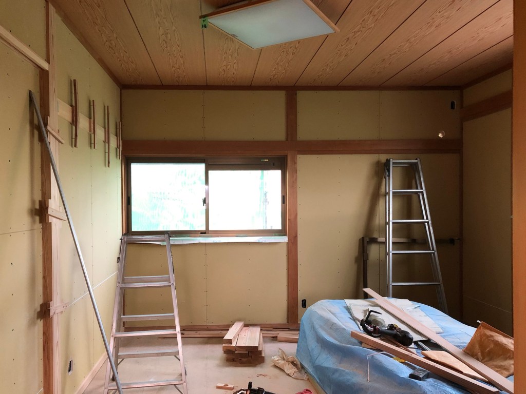 こちらの家は廊下周りなどの壁が真壁の塗り壁で、間取りの改修をしたところは柱や納まりの関係で大壁にしました。既存の天井はそのまま残し、部分的に新たな周り縁を入れて頂きました。大工さんのおかげで違和感なく納まったと思います。