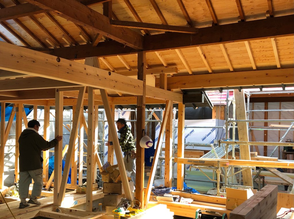 元の建物は平屋の割には高さがあり、部分的に梁を二重に掛けて床を張り小屋裏部屋を作ることになりました。