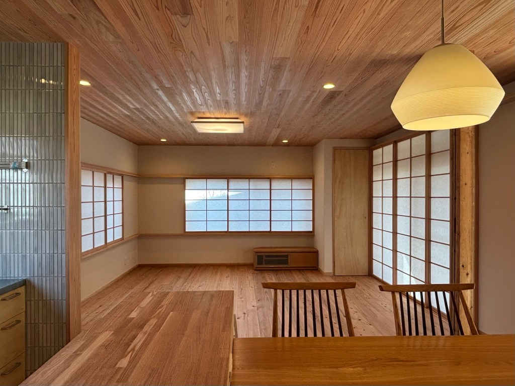 LDKは床壁とも吉野杉の板張りに改修しました。