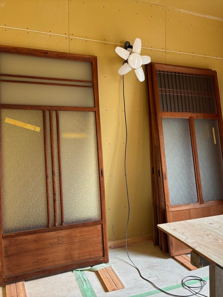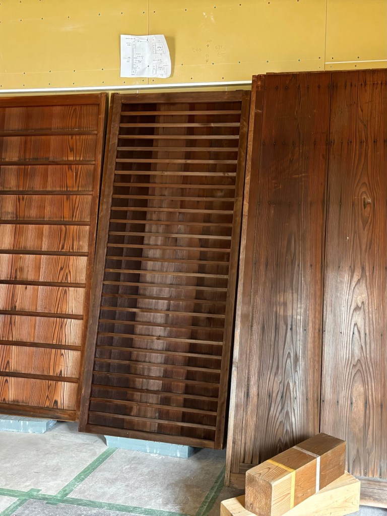 古建具もたくさん使わせて頂きます。お施主さんとの打ち合わせ前に、工務店さんが綺麗に水洗いしてくださいました。打ち合わせで、どこにどの戸を使うかも無事に決定しました。