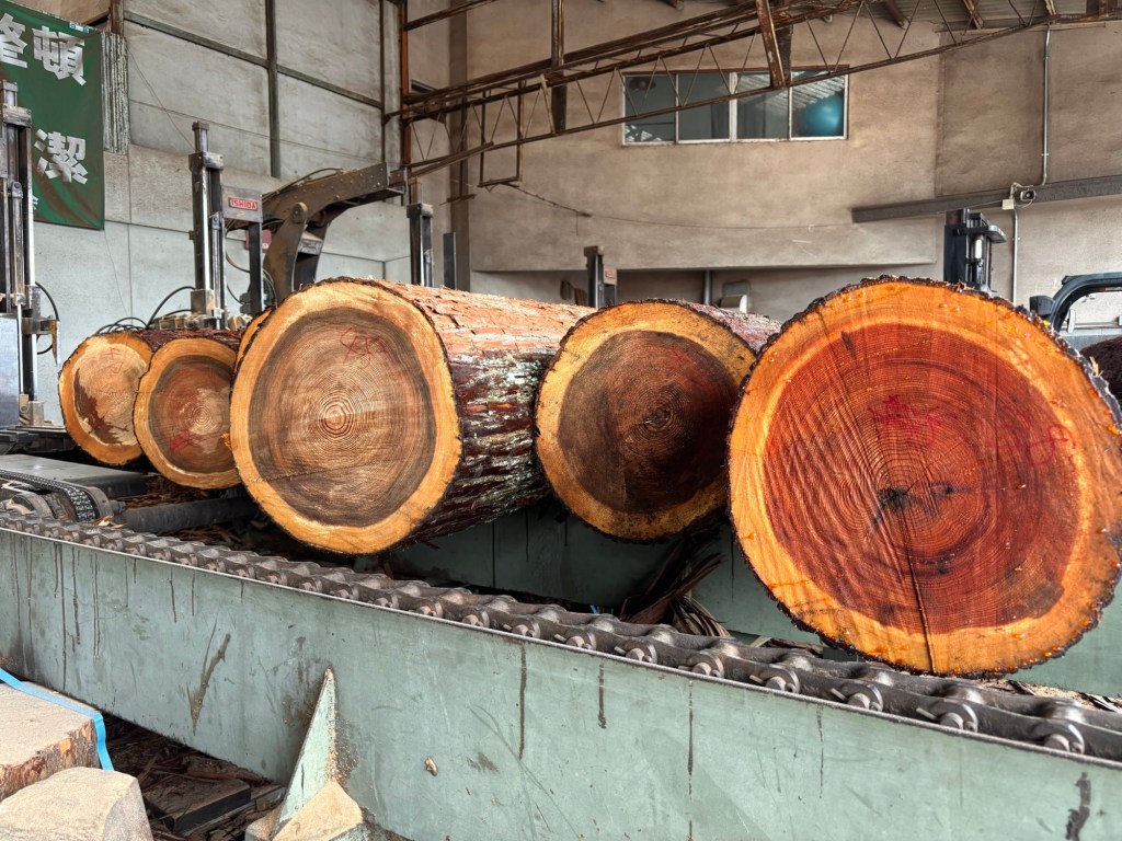 7本分を製材して頂き、現在はホーテックさんのところで桟積みをして天然乾燥中です。製品になるのはまだ先ですが楽しみです。