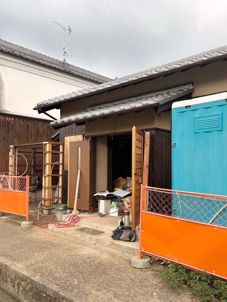 入口側も一部塀で囲みます。下地が組みあがってきました。完成までもうあと少しというところです。