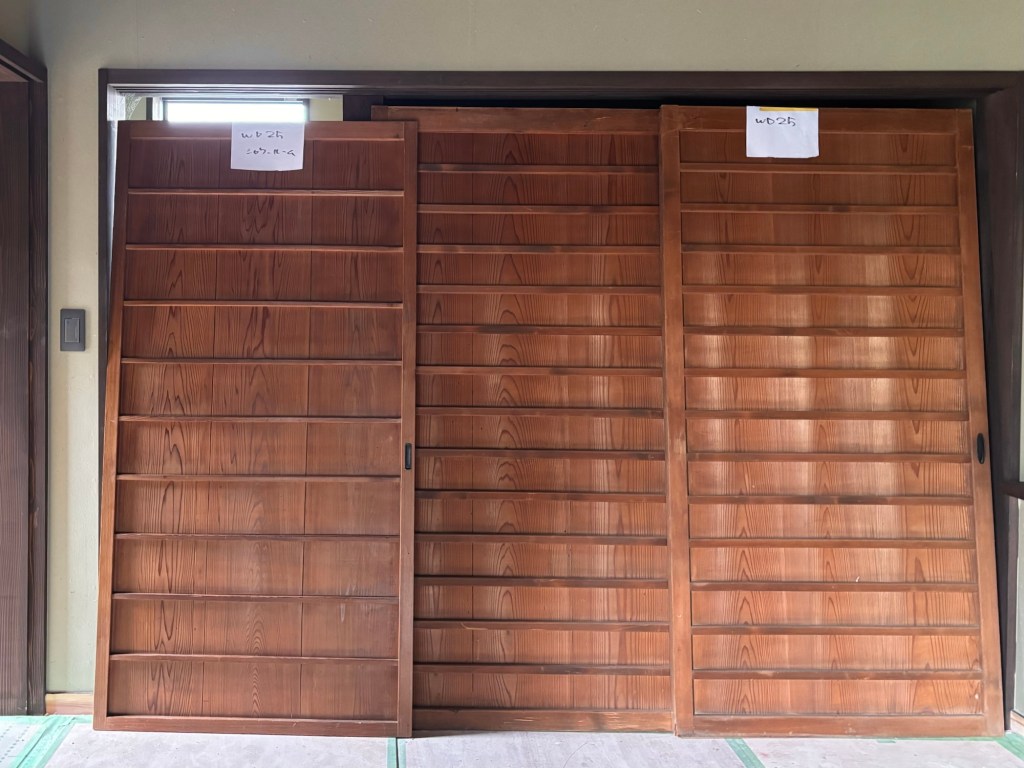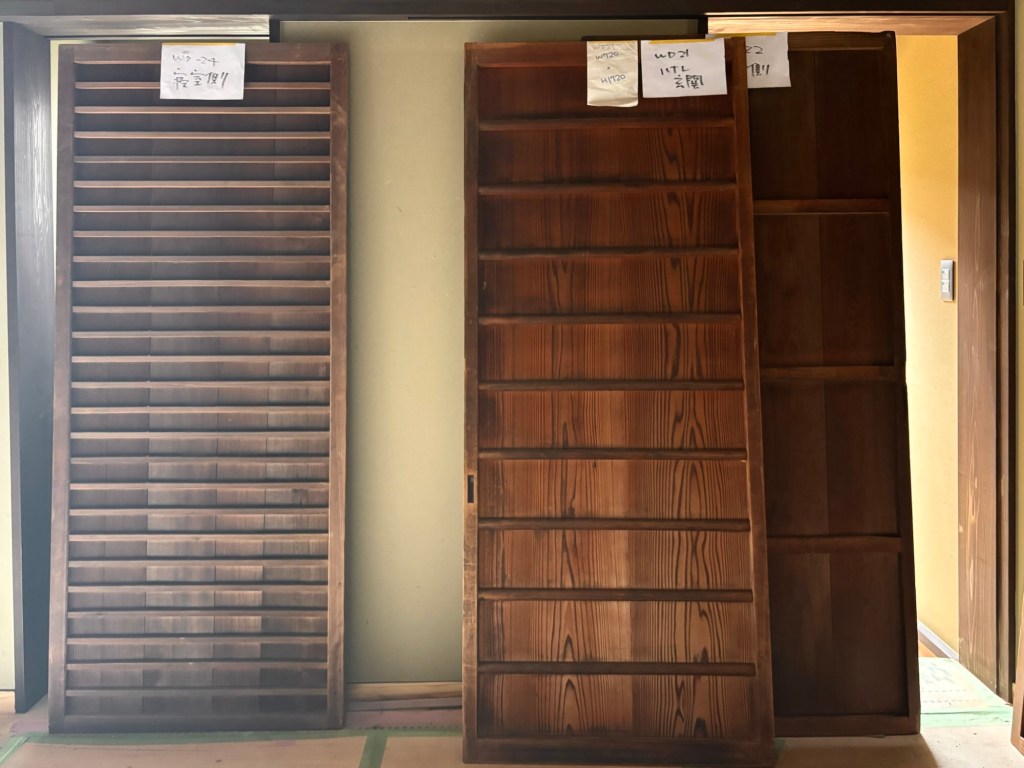 ほとんどはお施主さんが買い集められた建具です。傷みもありサイズの調整も必要ですが、作りの良い建具ばかりです。