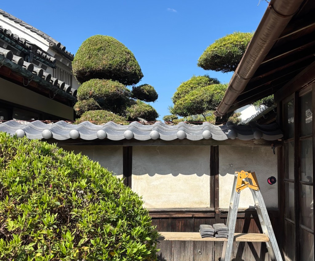 東の庭側は新しい瓦に葺き替えて頂いています。