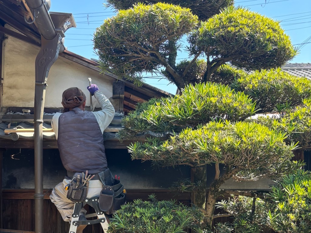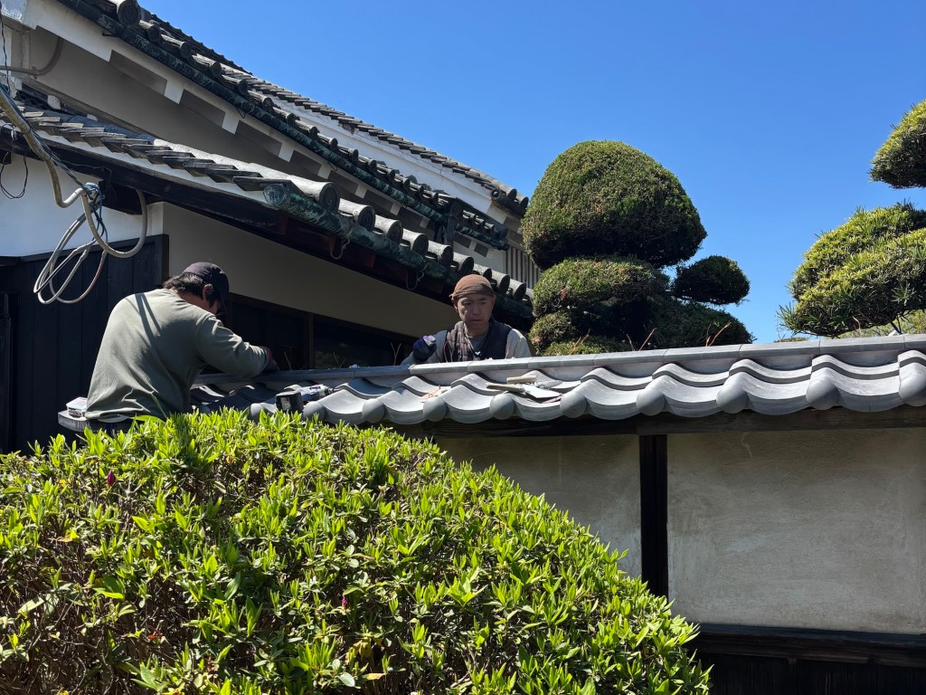 西側の瓦は既設の古瓦を使って頂いています。全てを新しくせず、古瓦でも劣化が少なく使えるものは使って頂いています。最近のものよりも意匠が独特で情緒があり、周囲の塀瓦とも合います。