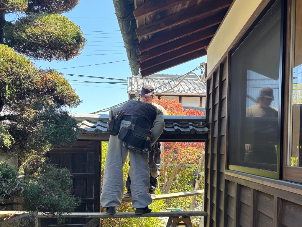 外回りなどの工事が少し残っており、この日は庭を仕切る塀の塀瓦の補修をされていました。
